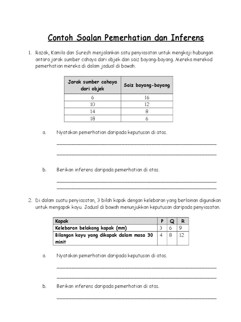 Daya ialah tarikan dan tolakan yang bertindak ke atas sesuatu objek. Inferens sains tahun 4 dan 5 kemahiran saintifik youtube. Kemahiran proses sains (kps) membuat inferens adalah: Membina hipotesis untuk soalan 10 eksperimen sains ting 4/5. Cikgu mcnor berkongsi cara menjawab soalan pemerhatian dan inferens berdasarkan latihan dalam buku teks tahun 6 muka surat 113#cikgootube . Tahun 5 modul sains upsr telegram 0 2. Saya lihat pokok x layu. Ustazah fatteyasains 4 & 5. **inferens ialah sebab kenapa sesuatu itu terjadi berdasarkan apa yang dapat kita perhatikan. Beri sebab kenapa suhu air berkurang pada . Contoh pemerhatian yang boleh diberikan berdasarkan gambar tersebut ialah. Kemahiran proses sains (membuat inferens)#kemahiranprosessains #inferens #sainstahun3.